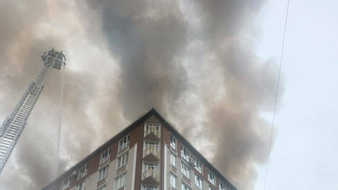 Incendiu la mansarda unui bloc de locuit din Durlești. 70 de pompieri și 13 autospeciale luptă cu flăcările (FOTO)