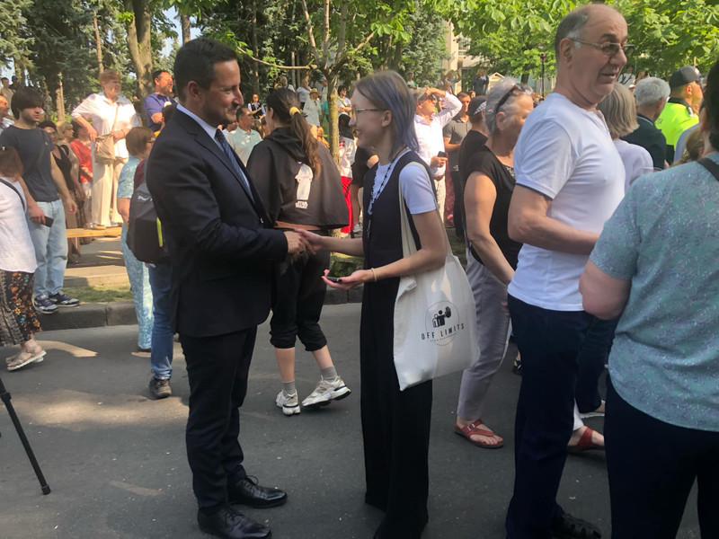 Liderul de la Cotroceni a fost întâmpinat de un grup de susținători cu aplauze, flori și slogane de unitate națională. Deputatul în primul Parlament și semnatar al Declarației de Independență al Republicii Moldova, Pintilie Pârvan; vicepreședinții Parlamentului European Victor Negrescu și Nicu Ștefăniță; fosta ministră a Tineretului și Sportului Loretta Handrabura; Ambasadorul Republicii Moldova la București, Victor Chirilă; directorii școlilor românești din regiunea transnistreană, profesorii Eleonora Cercavschi și Ion Iovcev sunt cei de la care a reușit să culeagă Ina Guțu impresiile și gândurile referitoare la improtanța vizitei președintelui Nicușor Dan în Republica Moldova.