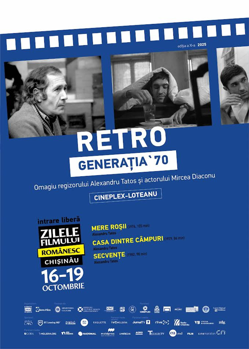 Marele cineast Alexandru Tatos va fi omagiat printr-o retrospectivă de trei filme la Zilele Filmului Românesc la Chișinău. Toate cele trei pelicule - „Mere roșii” (1976), „Casa dintre câmpuri” (1979) și capodopera „Secvențe” (1982) - îl au în distribuție pe regretatul Mircea Diaconu, plecat dintre noi la finalul anului trecut, așa că secțiunea RETRO îl comemorează și pe marele actor.