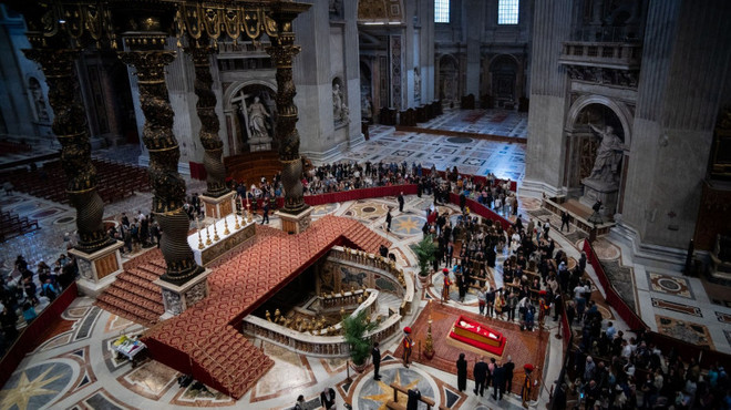 VIDEO | Circa 128.000 de persoane au intrat până vineri dimineață în Bazilica Sfântul Petru din Roma pentru un ultim omagiu la sicriul cu trupul neînsuflețit al Papei Francisc